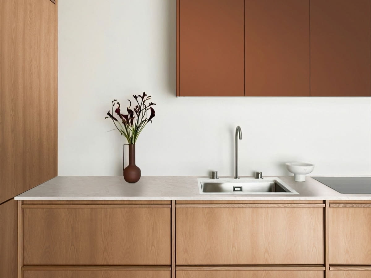 Blaty laminowane stanowią rozwiązanie, które łączy estetykę inspirowaną kamieniem z wygodą użytkowania. Ich konstrukcja sprawia, że są znacznie lżejsze, co ułatwia transport i montaż. Jednocześnie nowoczesne technologie produkcji zapewniają wysoką odporność na intensywne użytkowanie, wilgoć oraz działanie wysokiej temperatury czy pary wodnej. Istotną zaletą jest również brak konieczności regularnej konserwacji – utrzymanie powierzchni w dobrym stanie ogranicza się do standardowego czyszczenia. To znacząco upraszcza codzienne korzystanie z kuchni.