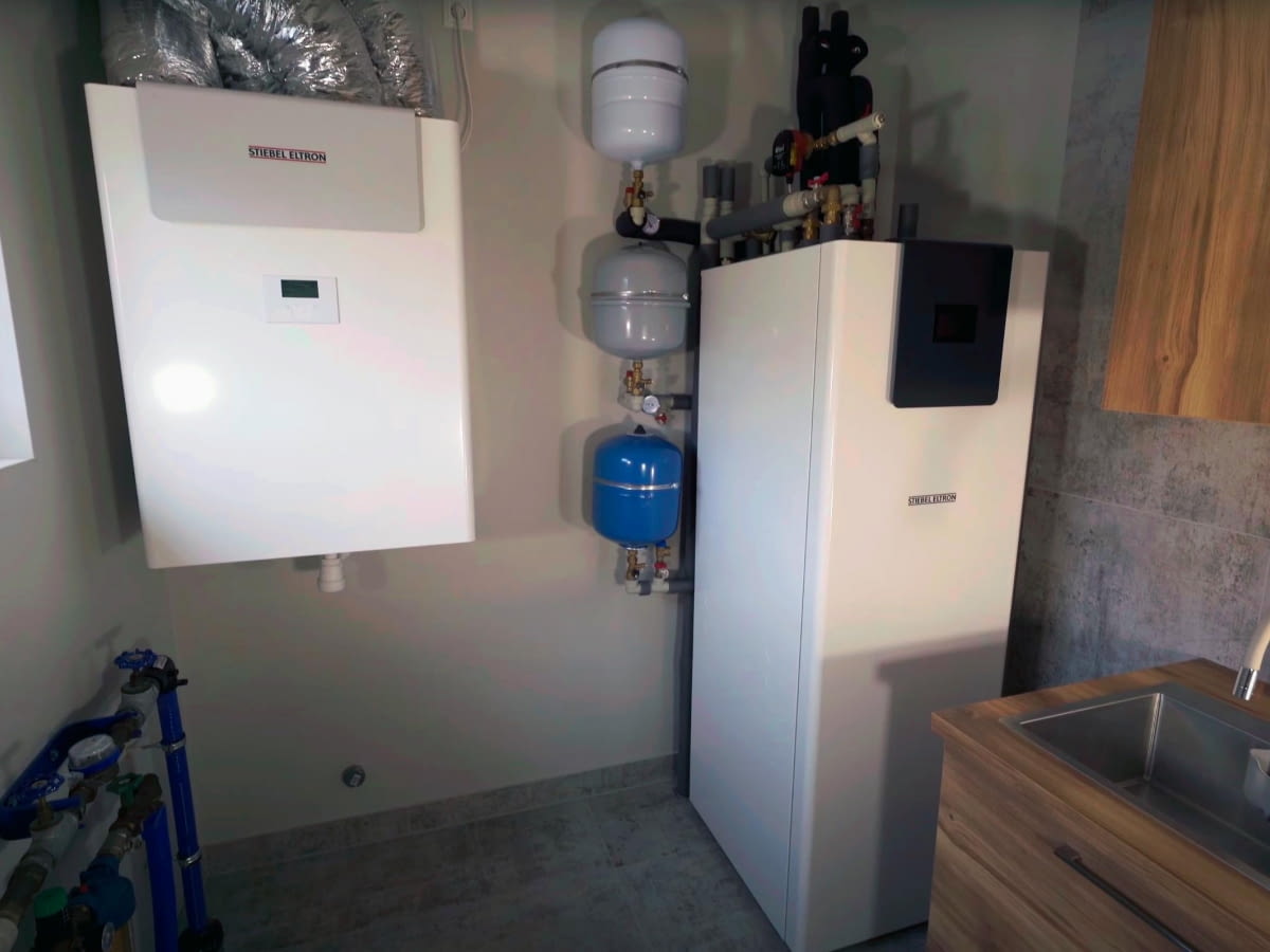 System uzupełnia rekuperator Stiebel Eltron VRC-W 400. Dzięki połączeniu pompy i rekuperacji właściciele zyskali 5-letnią gwarancję. Oba urządzenia znalazły miejsce w pralni, pełniącej równocześnie funkcję suszarni.