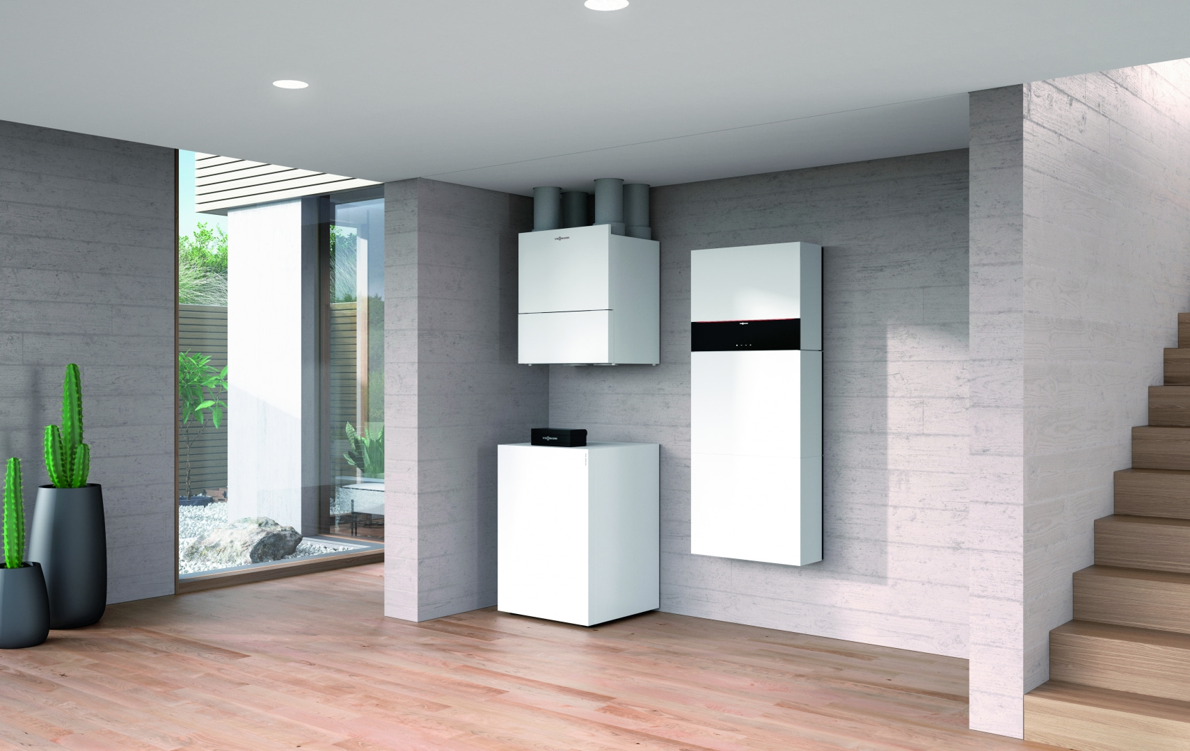 - rekuperator z wymiennikiem ciepła, wentylatorami, automatyką sterowania i filtrami powietrza (nawiew/wywiew);