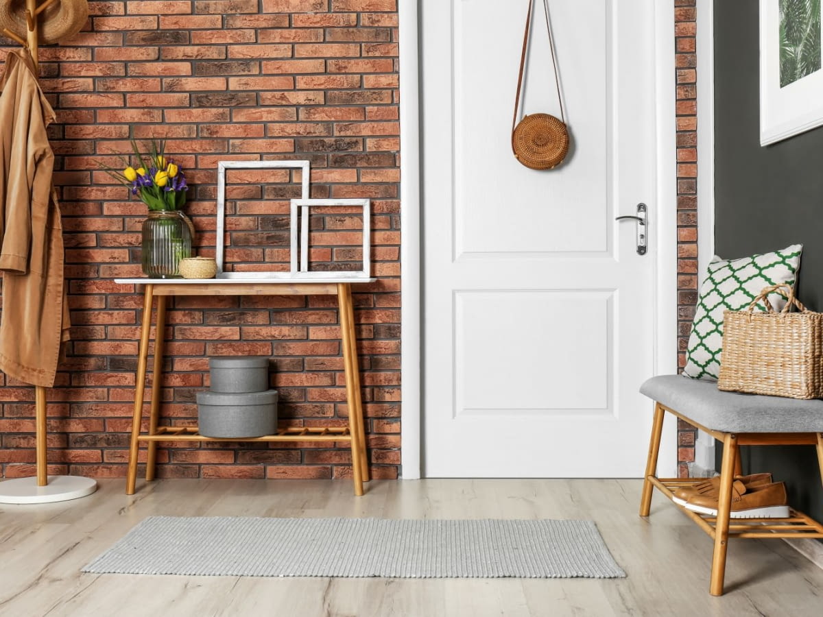 Warto zadbać o wycieraczkę wewnętrzną oraz niewielką strefę przy wejściu, gdzie można odstawić mokre buty. W większym przedpokoju dobrze sprawdza się wydzielony fragment podłogi z innego materiału, na przykład z płytek, który oddziela strefę wejścia od dalszej części mieszkania.