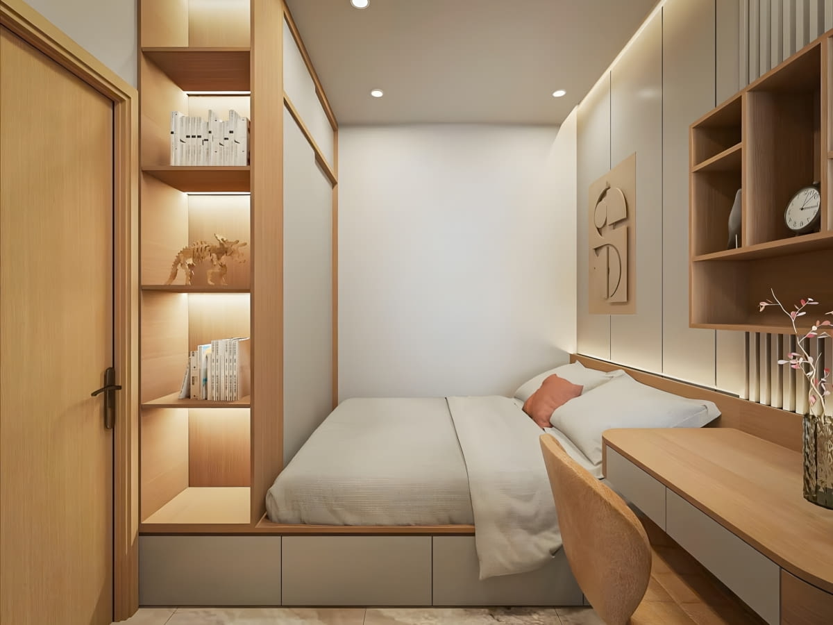Warto też zadbać o to, żeby strefa snu była jak najbardziej odcięta od reszty – szczególnie jeśli w tym samym pomieszczeniu stoi biurko. Mózg potrzebuje sygnałów przestrzennych, żeby odróżniać odpoczynek od pracy. Zasłona, parawan, regał z roślinami – każde z tych rozwiązań pomaga.