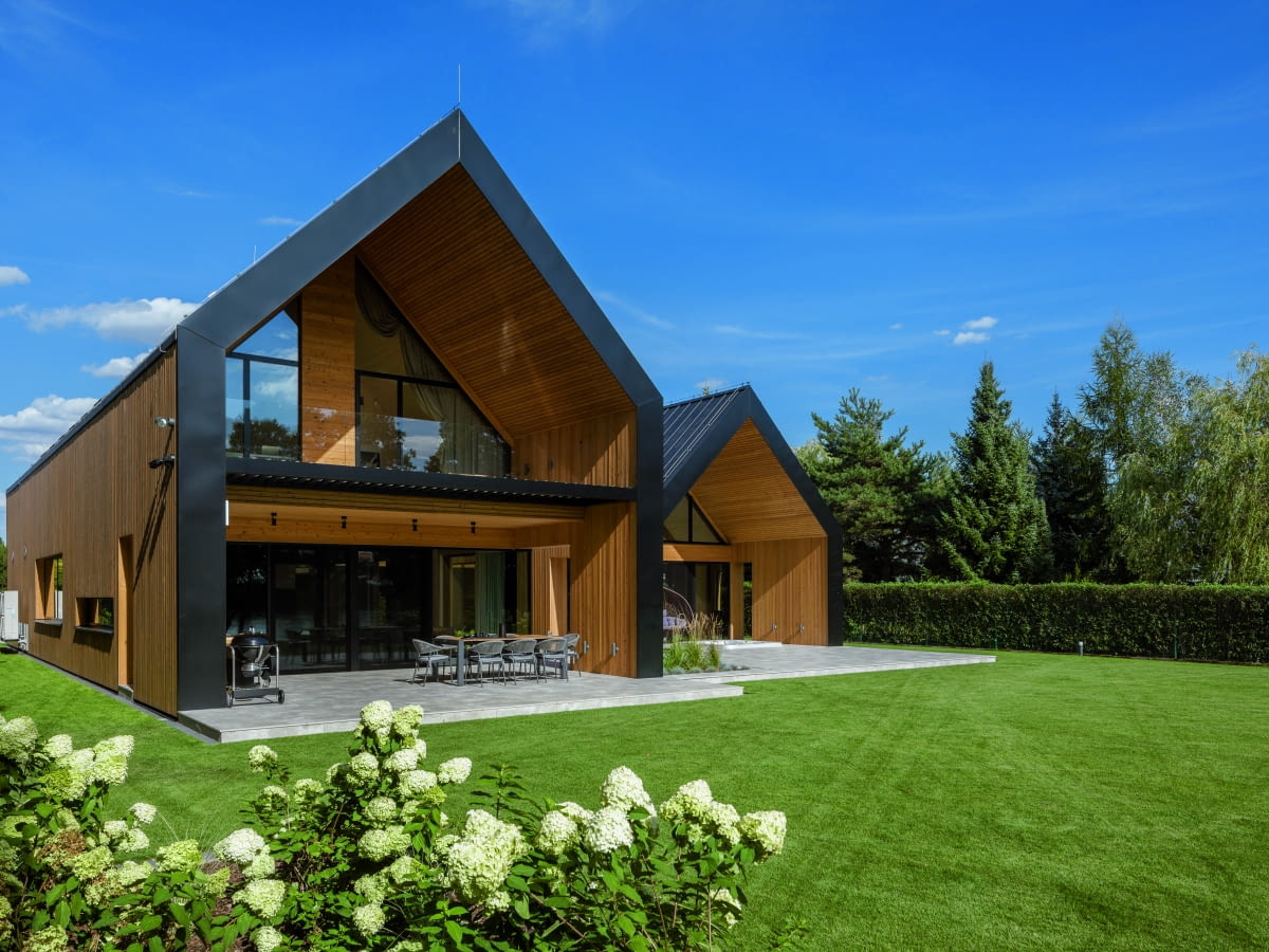 – Wspólnie z architektem wybraliśmy technologię budowy domu CLT, czyli cross laminated timber, krzyżowo klejone drewno – mówią właściciele. – Pozwala ona na realizację dużych otwartych przestrzeni, pomimo wykorzystania drewna jako głównego budulca.
