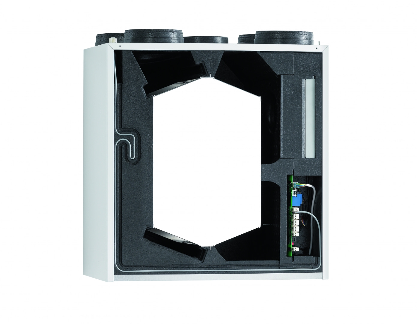 Rekuperator z wymiennikiem entalpicznym odzyskującym ciepło i wilgoć. Urządzenie można montować aż w 3 pozycjach