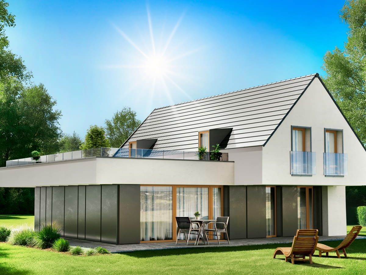 Dla tych, którzy wahają się między nowoczesnym stylem a tradycyjnym wyglądem, idealnym rozwiązaniem może być dachówka półpłaska, np. Topas 13V.