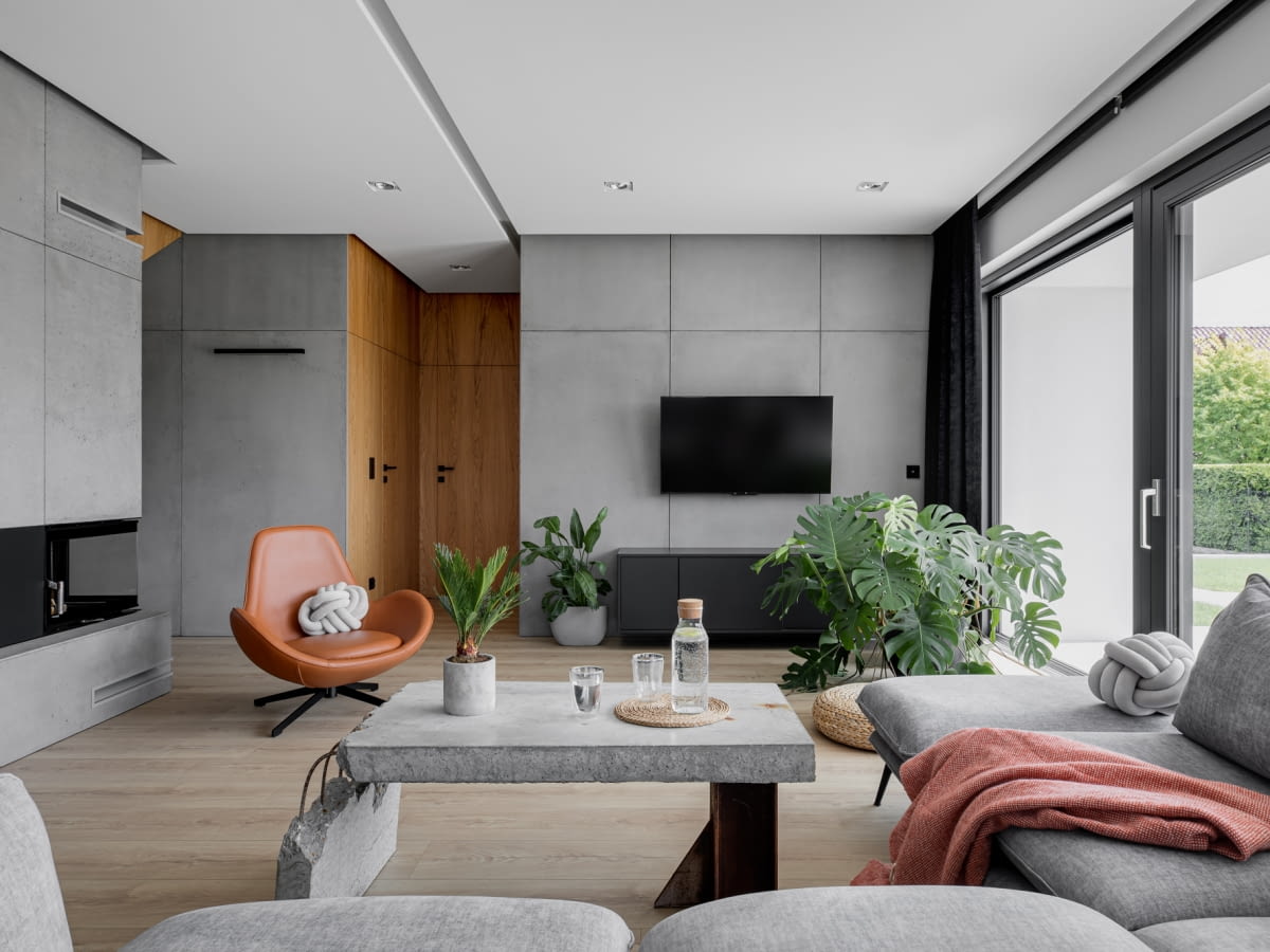Indywidualizm, naturalne materiały, ponadczasowy design, funkcjonalność, architektoniczna konsekwencja postawiona przed pokusą łatwego dekoratorstwa oraz szczerość i spójność projektowa – to są uniwersalne zasady, którymi kierujemy się zarówno w projektowaniu domów i wnętrz. Unikamy sytuacji, w której intensywny kolor pojawia się przypadkowo na drobnych elementach — to wizualnie męczy wzrok, przytłacza lub zaburza proporcje. Ciepłe drewno, delikatne tkaniny, kamień, szkło – to elementy, które tonują kolor i nadają mu kontekst. Dzięki naturalnym materiałom intensywna barwa przestaje być agresywna, a zaczyna być szlachetna.