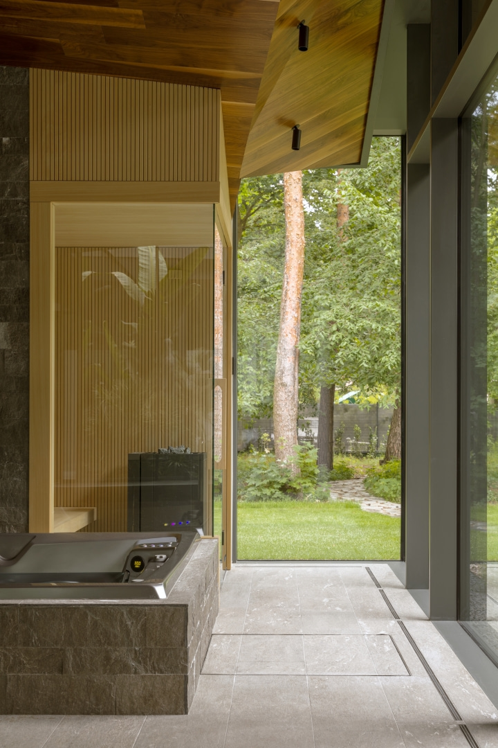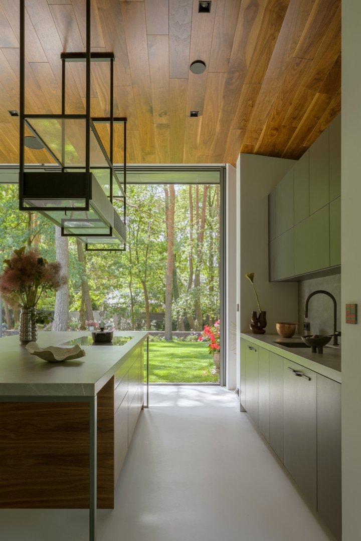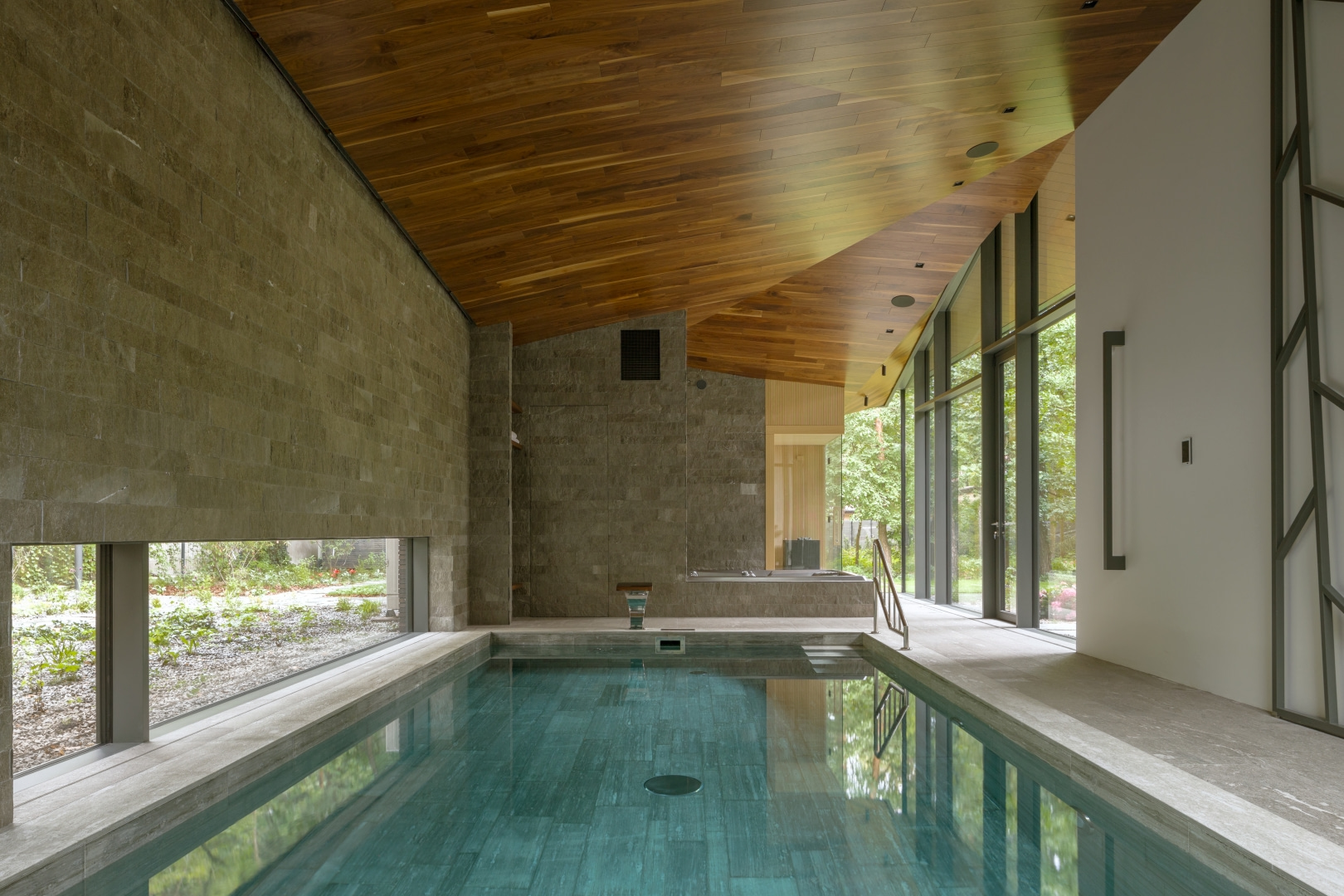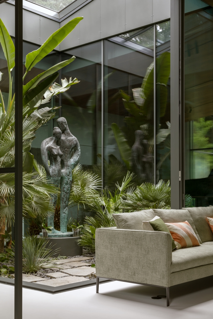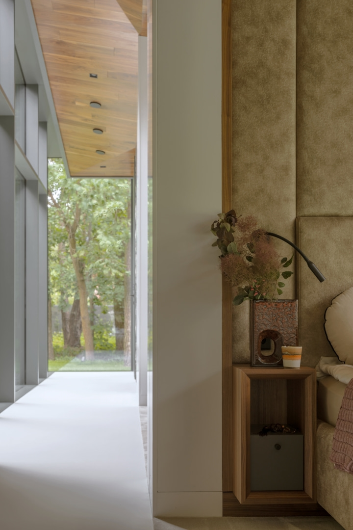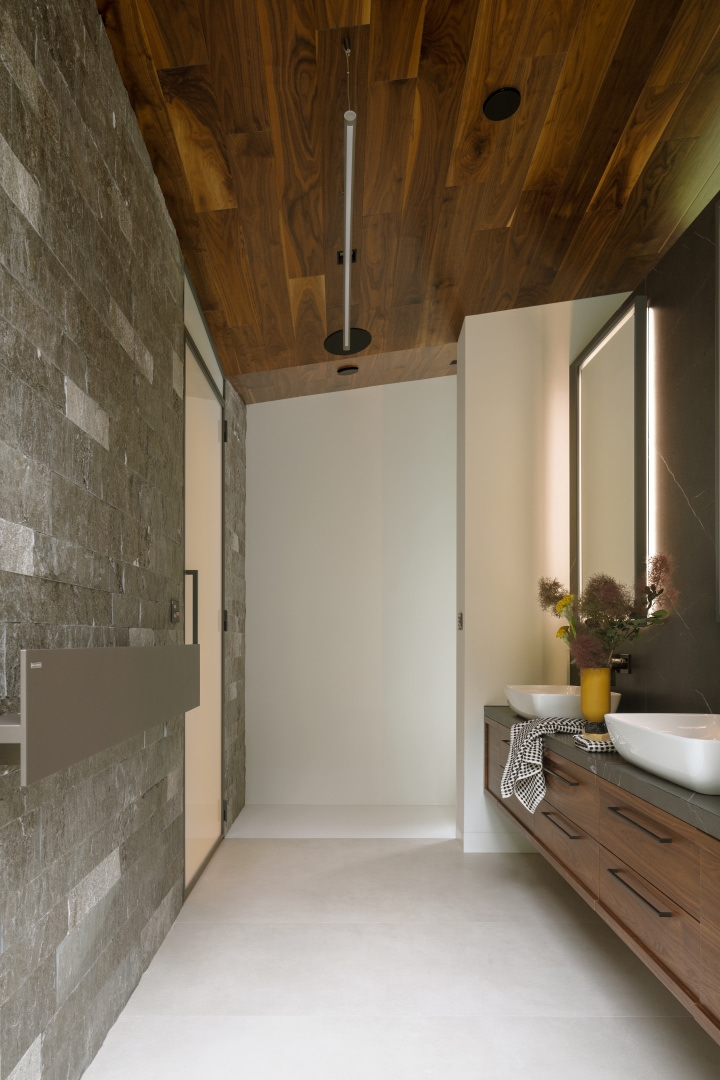 W tej spektakularnej przestrzeni wnętrza zaprojektowała pracownia HOLA Design. 400-metrowy parterowy dom wyróżnia się otwartą aranżacją, sprzyjającą bliskości mieszkańców. Przestrzeń jest nie tylko funkcjonalna, lecz także pełni rolę miejsca kontemplacji sztuki i muzyki – szczególnym elementem wyposażenia jest fortepian Steinway Spirio, pozwalający cieszyć się mistrzowskimi wykonaniami utworów w domowym zaciszu.