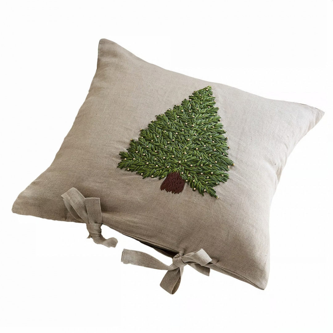 - lniany bieżnik na stół z drobnym, choinkowym nadrukiem,