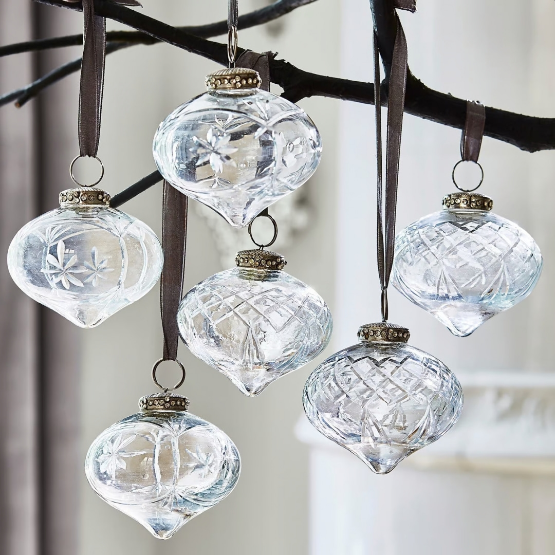 - zawieś na choince ozdoby wyglądające jak lodowe kryształki, szklane sopelki czy drobne „bryłki lodu”,