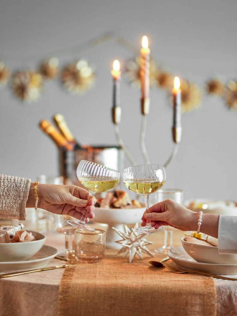 Złoto i odcienie szampana to hołd dla świętowania, sylwestrowej nocy i odrobiny glamour. W zimowych wnętrzach nie chodzi jednak o przepych, a raczej o subtelne, świetliste akcenty, które dodają elegancji i wrażenia luksusu.
