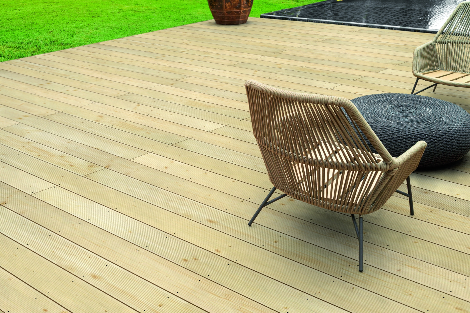 Materiał, który wybierzemy na taras, musi być odporny na działanie promieni słonecznych, wilgoć i mróz, a także łatwy w utrzymaniu. Zwykle wykorzystujemy tu drewno, które jest ponadczasowe i klimatyczne (nie wolno zapomnieć o jego regularnej impregnacji). Trwalszym rozwiązaniem może być drewno egzotyczne, jak teak, bambus czy massaranduba. Z powodzeniem możemy ułożyć taras z kostki brukowej betonowej lub z płyt betonowych. Ten materiał jest w pełni odporny na warunki atmosferyczne i nie wymaga impregnacji. Do kolejnych ciekawych pomysłów na podłogę tarasu można zaliczyć deski kompozytowe. To rozwiązanie jest atrakcyjne i coraz chętniej wybierane, ponieważ łączy w sobie walory dekoracyjne drewna z wytrzymałością tworzywa sztucznego.
