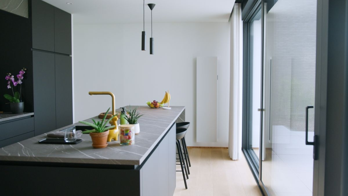 Smukła, pionowa forma grzejnika pozwala na montaż tam, gdzie przestrzeń jest ograniczona, czyli przy wąskich fragmentach ścian, między przeszkleniami lub w strefach komunikacyjnych.