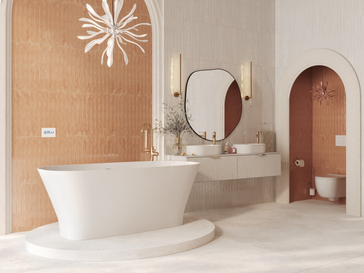 W mniejszym wnętrzu sprawdzi się wanna wolno stojąca przyścienna - umiejscowiona w łazience w sposób swobodny, ale oparta na jednej ze ścian. To połączenie klasycznego rozwiązania, jakim są wanny wolno stojące, z funkcjonalnością wanien przyściennych – rozwiązanie to pozwala na zaoszczędzenie przestrzeni, jednocześnie zachowując jej elegancki wygląd. W porównaniu do tradycyjnych wanien w zabudowie modele przyścienne wolno stojące są łatwiejsze w montażu i często wymagają mniejszej ingerencji instalacyjnej.