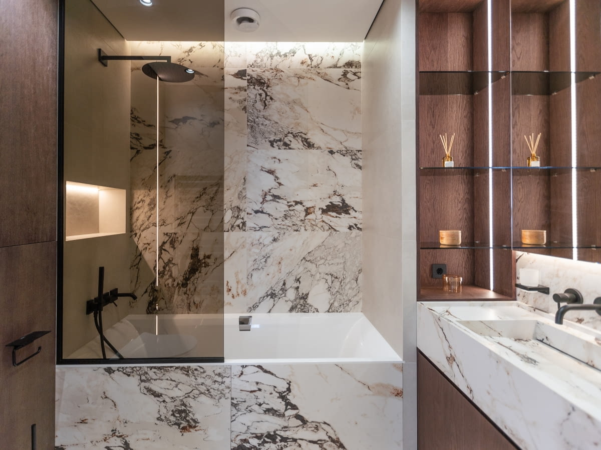 - Półki i szafki powinny współgrać z całą aranżacją łazienki.