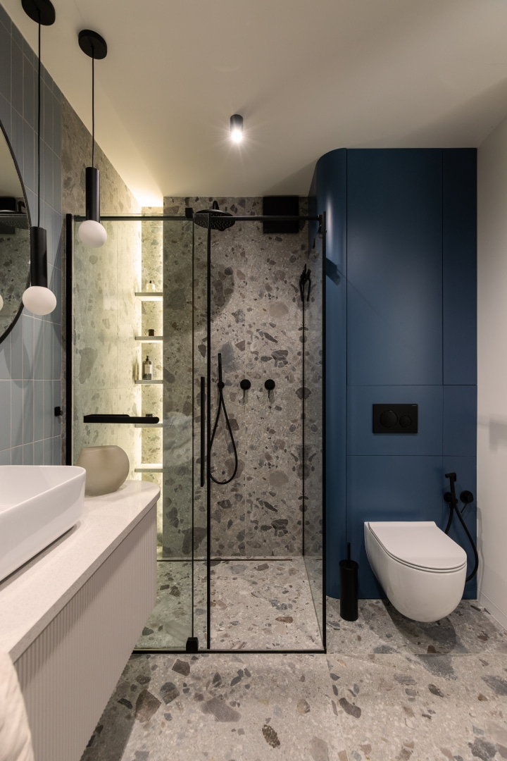![Honorowe miejsce w salonie zajmuje obraz Andrzeja Jana Batora. Granatowe akcenty kolorystyczne na tle bieli, szarości i ciepłej barwy drewna pojawiają się niemal w każdym pomieszczeniu mieszkania. Honorowe miejsce w salonie zajmuje obraz Andrzeja Jana Batora. Granatowe akcenty kolorystyczne na tle bieli, szarości i ciepłej barwy drewna pojawiają się niemal w każdym pomieszczeniu mieszkania.]()