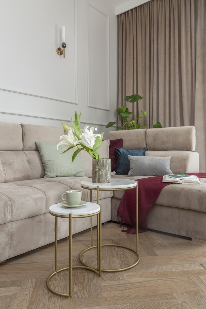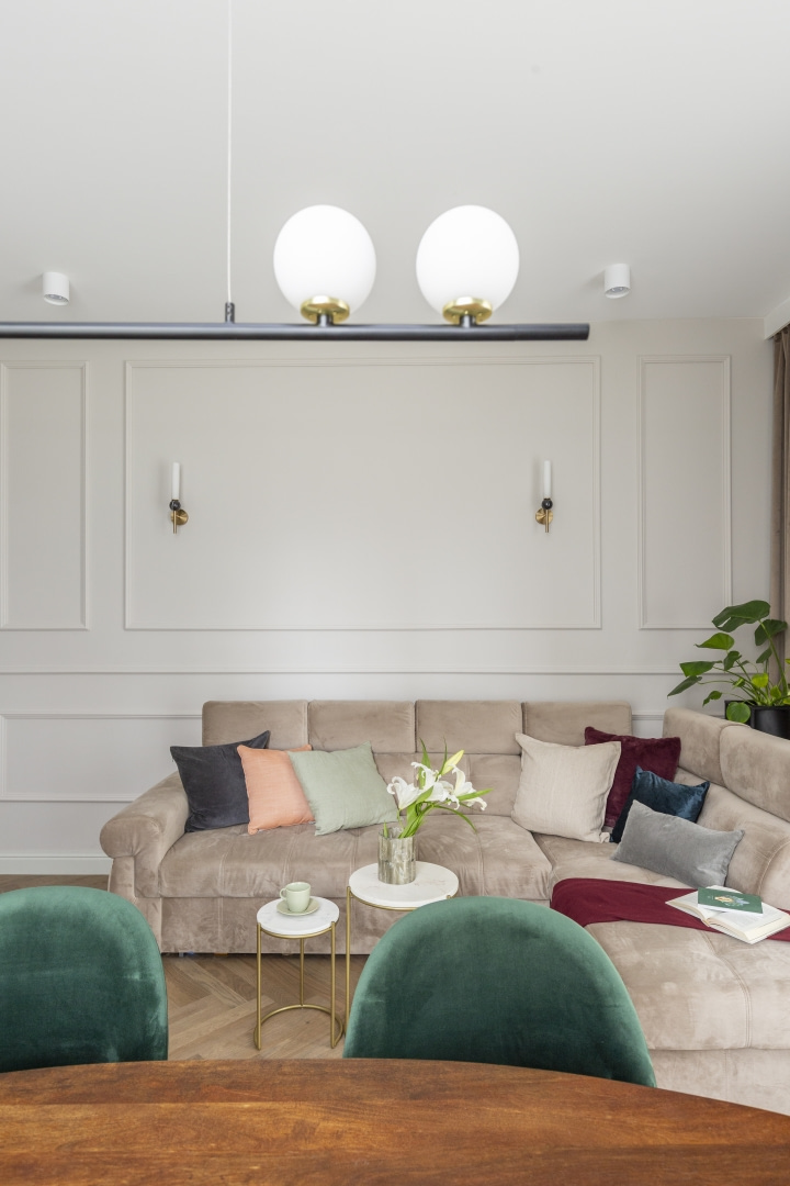Kaszmir i czarne akcenty - mieszkanie w Łodzi