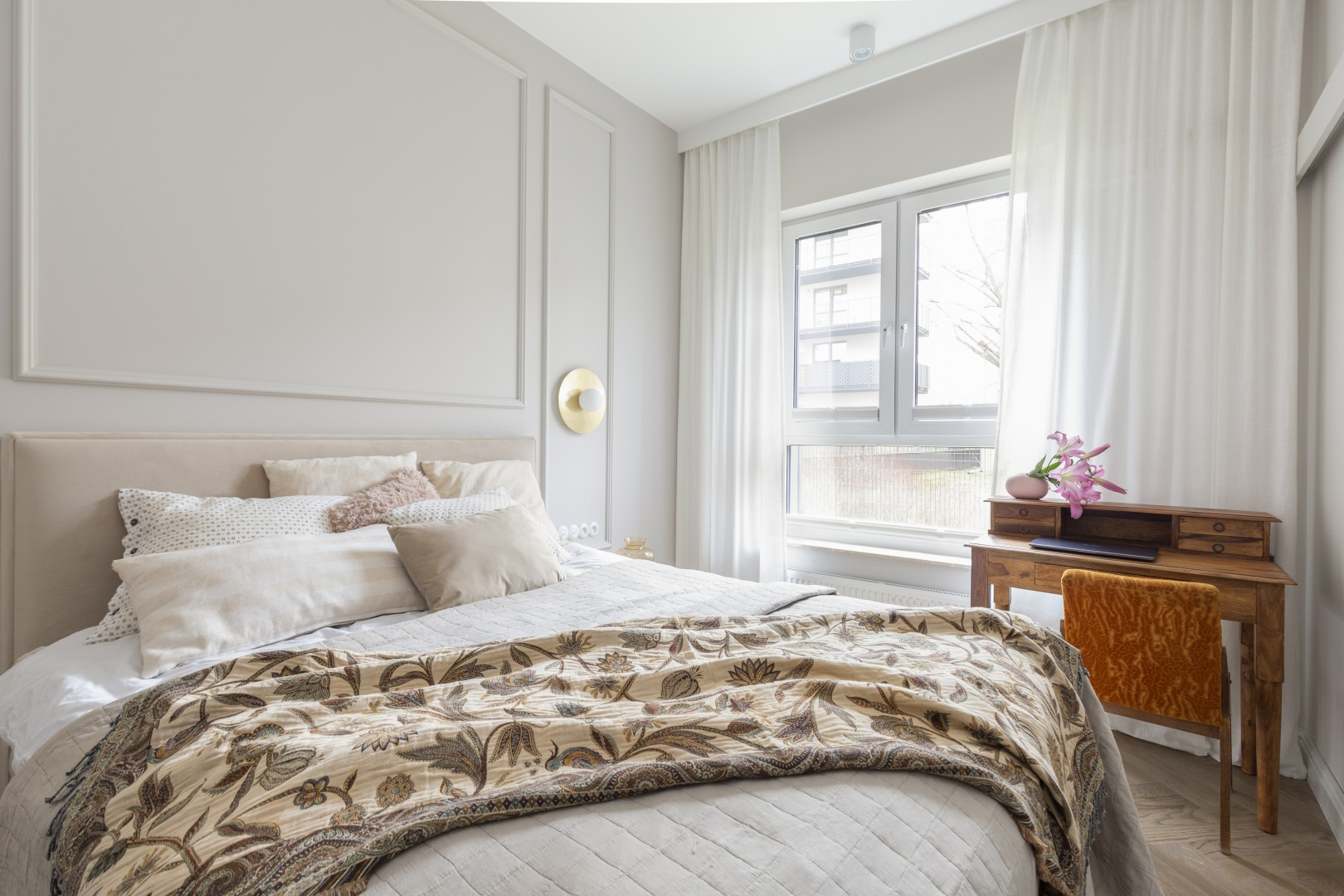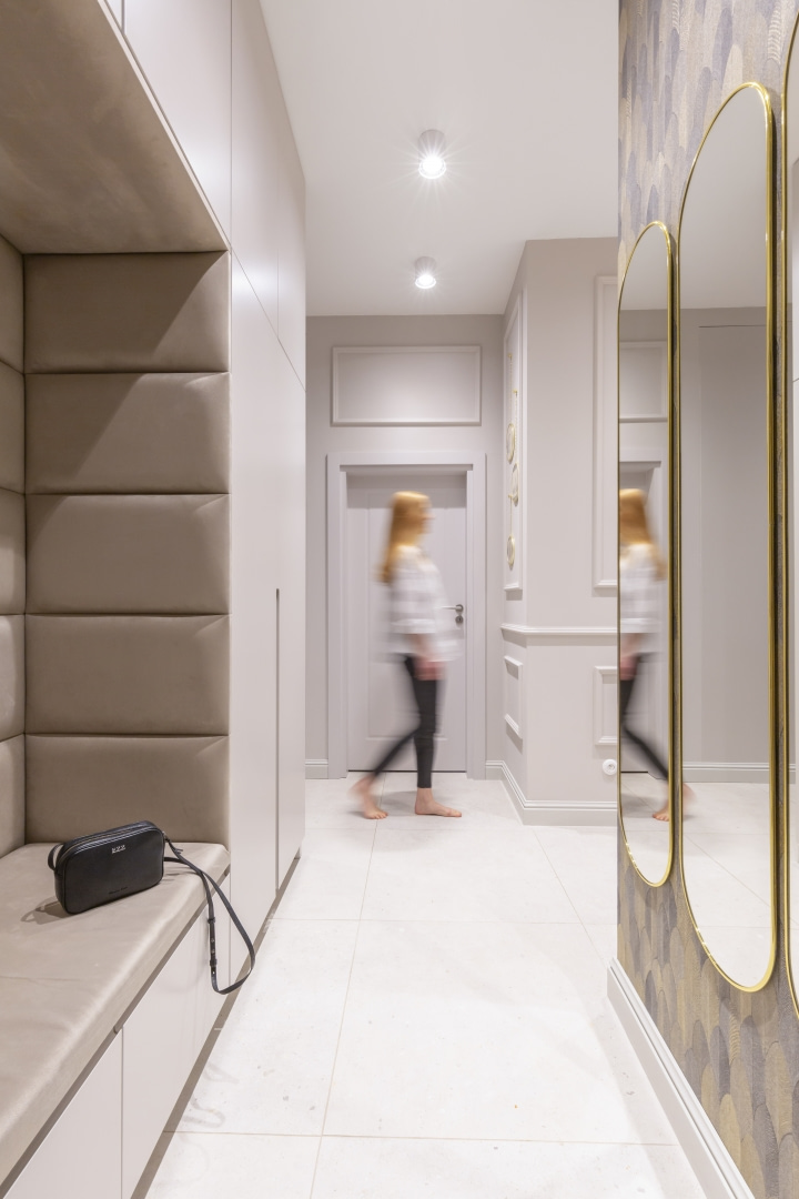 Eleganckie mieszkanie w bieli, beżach i szarości