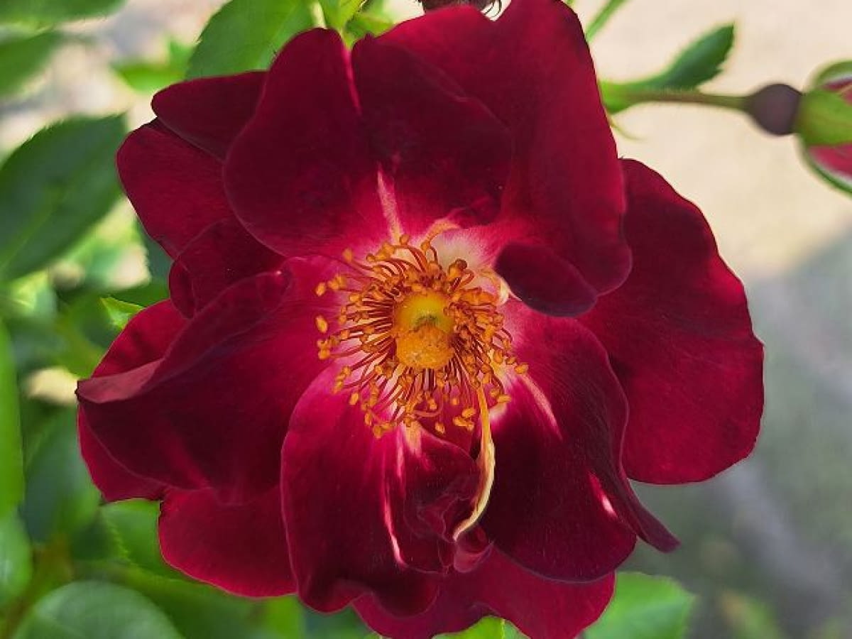 Floribunda zachwycająca aksamitną głęboką czerwienią otwartych kwiatów, na tle których wyróżniają się jaskrawe pręciki. Kwiaty przyciągają pszczoły i inne owady zapylające. Odmiana została ochrzczona w mieście Gotha w Turyngii, latem 2025 r. z okazji 1250 rocznicy powstania miasta. - Fot. rosen-tantau.com