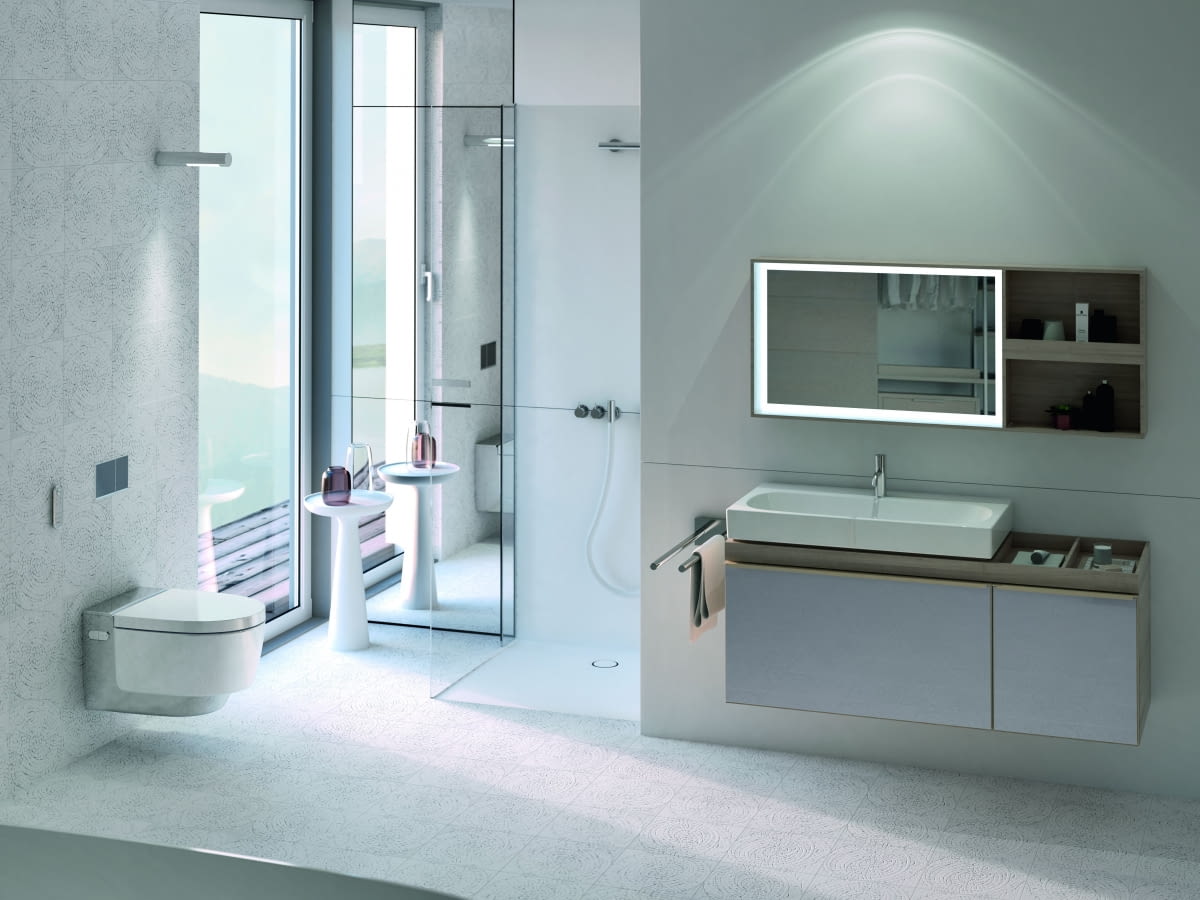 Wyposażenie wersji classic obejmuje efektywną i cichą funkcję usuwania zapachów, inteligentną suszarkę z ciepłym strumieniem powietrza oraz pilot. Model Comfort ma dodatkowe funkcje, np. dyskretne oświetlenie orientacyjne, aktywowane przez czujnik zbliżeniowy, które wskazuje kierunek nocą. Gdy użytkownik zbliża się do toalety, deska podnosi się automatycznie. Ten sam czujnik po wychwyceniu ruchu zaczyna nagrzewać deskę sedesową. Funkcja mycia, czyli najważniejszy element toalety myjącej, to przełomowe, rewolucyjne osiągnięcie inżynieryjne. Opatentowana technologia natrysku WhirlSpray, którą stworzyła firma Geberit, jest oparta na dwóch dyszach i dzięki pulsacyjnemu strumieniowi wody, wzmacnianemu przez dynamiczne napowietrzanie, zapewnia ukierunkowane, wyjątkowo staranne i równocześnie niezwykle przyjemne mycie. www.geberit.pl