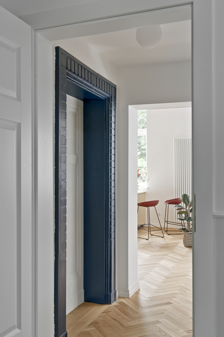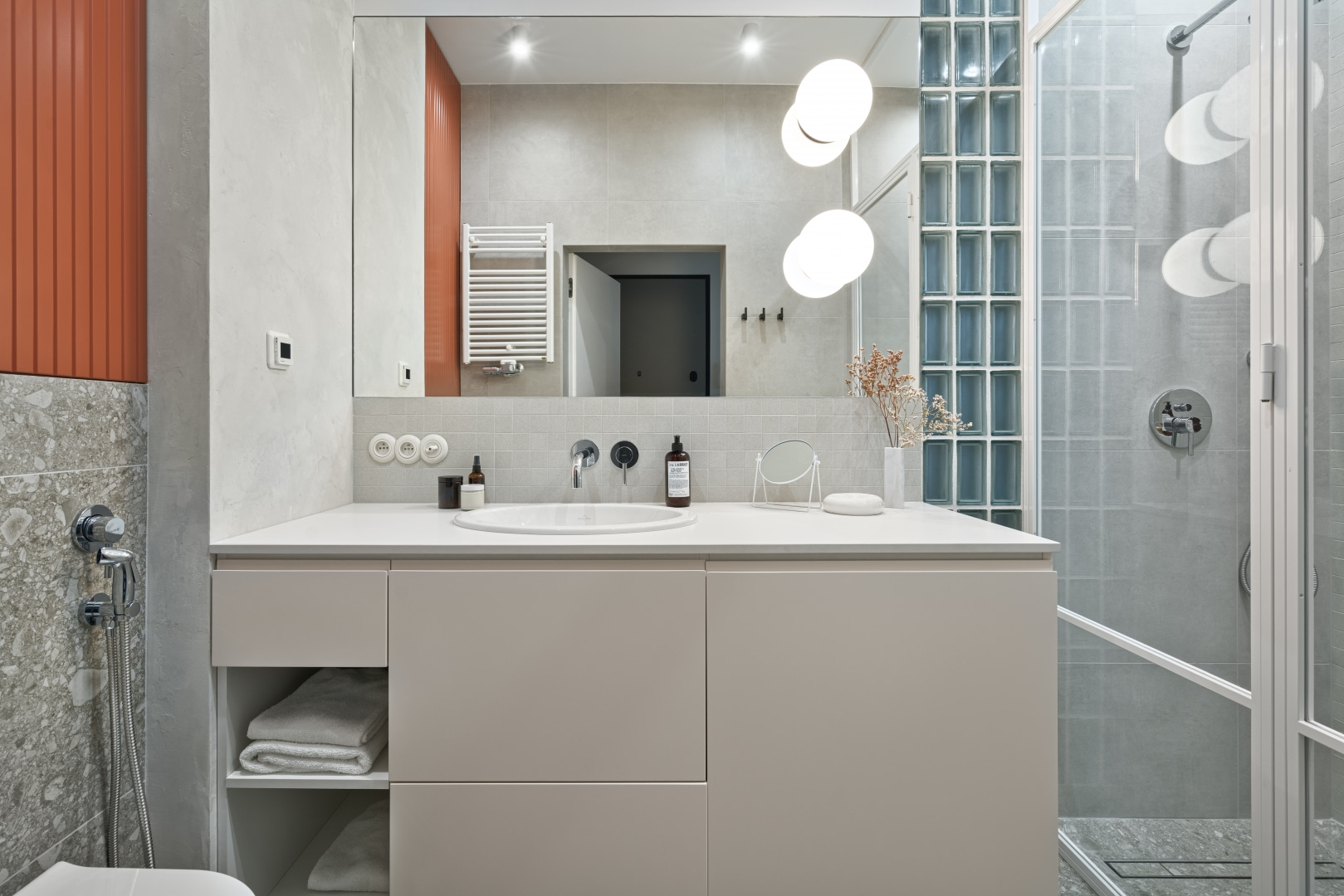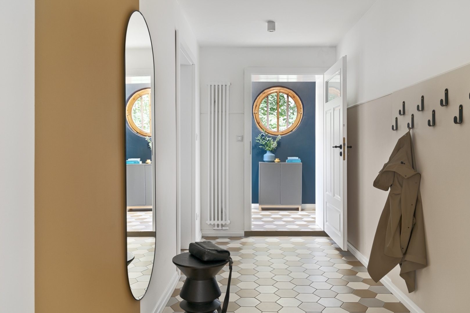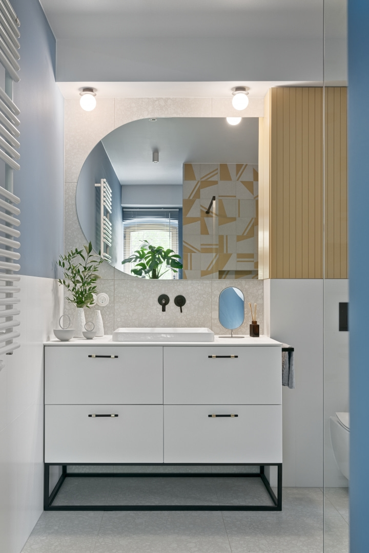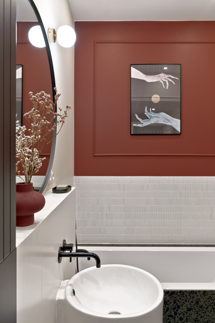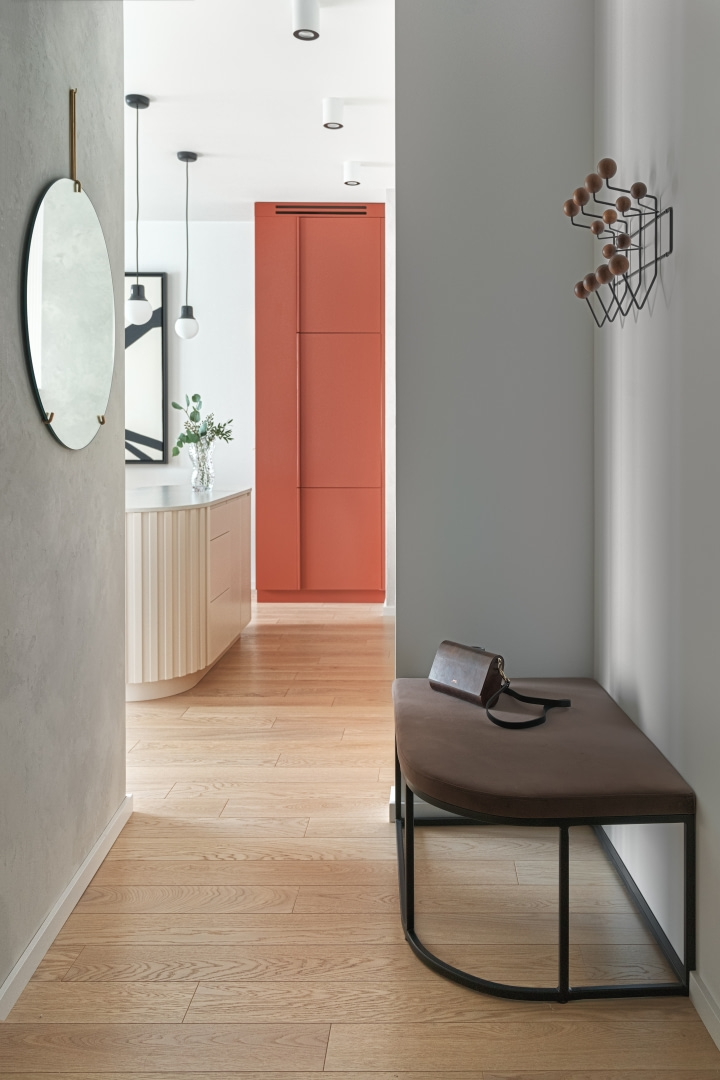 W gdańskiej, niemal 100-letniej kamienicy po całkowitej metamorfozie powstało odważne, pełne koloru mieszkanie, w którym nowoczesność współgra z historycznymi detalami. Przeniesiona na piętro kuchnia ze złotą wyspą stała się najważniejszym miejscem domu, a jadalnia w ciemnej czerwieni dodaje wnętrzu energii i charakteru. W salonie dominują łuki, koła, liczne akcenty kolorystyczne w ciepłej palecie barw, równoważącej biel ścian. Piętro uzupełniają pokój gościnny i łazienka z czerwienią i lastryko, konsekwentnie nawiązujące do strefy dziennej. Sypialnię przeniesiono na dół, tworząc przestrzeń z prywatną łazienką. Całość spajają geometryczne podziały, wspólne barwy i autorskie rozwiązania, dzięki którym mieszkanie zyskuje wyjątkowy klimat.