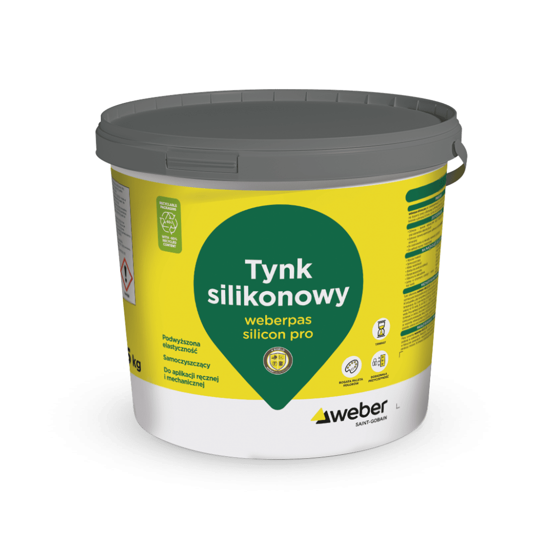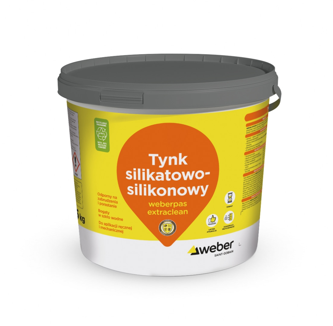 Weberpas extraclean to cienkowarstwowy tynk silikatowo-silikonowy, który łączy wysoką paroprzepuszczalność z efektem samooczyszczenia. Dzięki wysokiej zawartości szkła wodnego odznacza się podwyższoną odpornością na porastanie. Dostępny jest w fakturach baranek 1,0 mm, 1,5 mm i 2,0 mm. Z kolei weberpas silicon pro to samoczyszczący tynk silikonowy dla profesjonalnych wykonawców, który wyróżnia się podwyższoną elastycznością i wytrzymałością na uszkodzenia oraz wszechstronnością zastosowania. Oprócz faktury baranka 1,0 mm, 1,5 mm i 2,0 mm, dostępny jest w opcji kornik 2,0 mm.