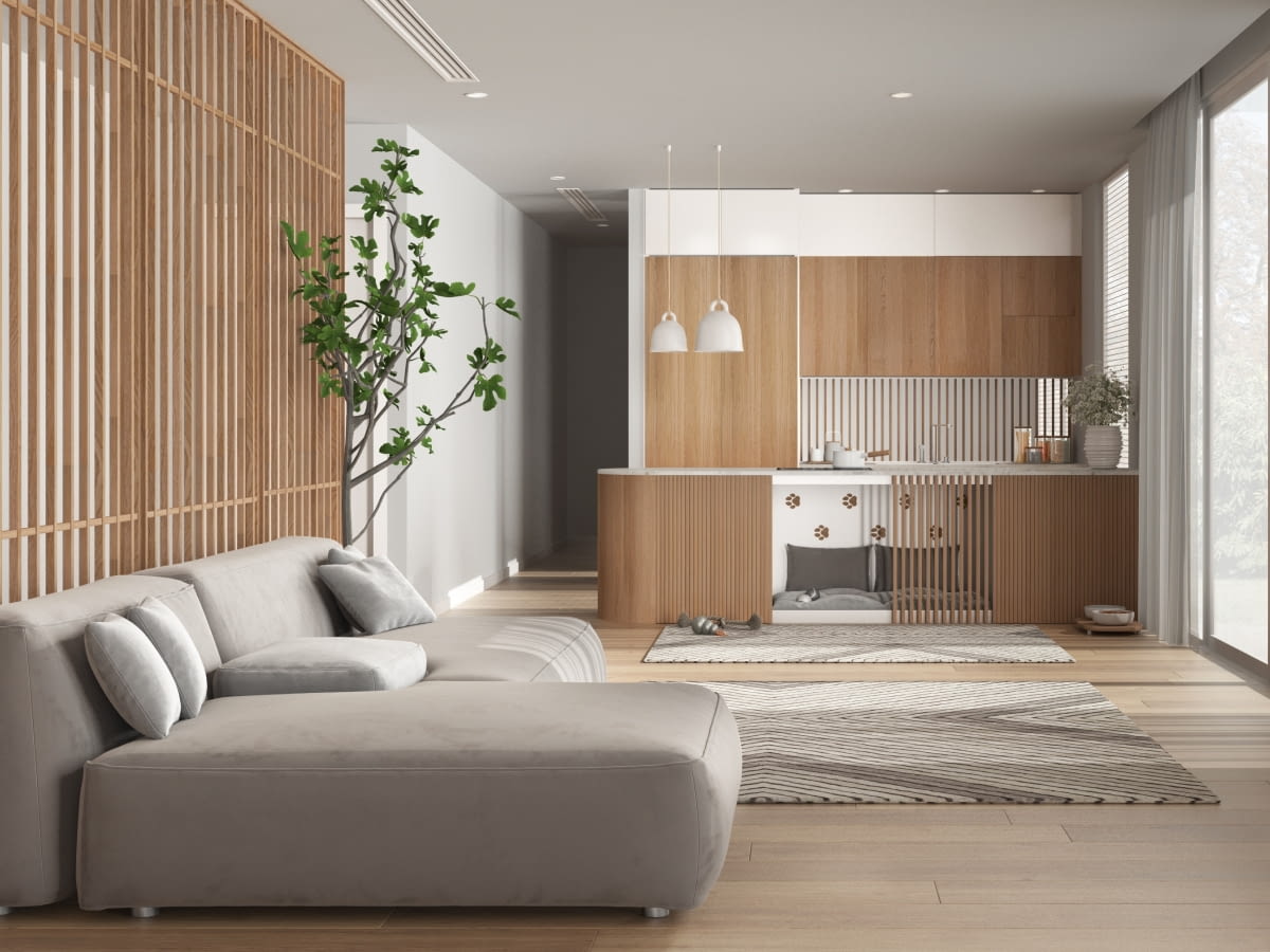 Wnętrza inspirowane Japonią i Skandynawią cechuje redukcja formy, wynikająca z dążenia do maksymalnej użyteczności przestrzeni. Minimalizm w tym ujęciu nie oznacza surowości ani ascetycznego charakteru, lecz konsekwentne i przemyślane projektowanie oparte na realnych potrzebach domowników. Każdy element wyposażenia pełni określoną rolę i jest dopasowany do funkcji danego pomieszczenia, bez miejsca na przypadkowe rozwiązania.