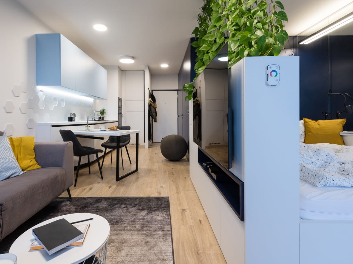 Dzięki właściwemu wykorzystaniu światła, wysokości wnętrza oraz mebli wielofunkcyjnych można osiągnąć komfortowy, dobrze zorganizowany i estetyczny efekt. Przemyślane rozwiązania sprawiają, że nieduża przestrzeń "działa" jak mieszkanie o większym metrażu - bez zbędnych kompromisów, z poszanowaniem ergonomii i harmonii wnętrza.