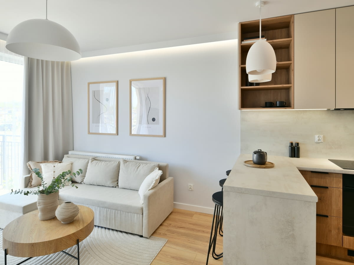 Skandynawski salon z kuchnią to połączenie jasnych kolorów, naturalnych materiałów i przemyślanej funkcjonalności. Spójna paleta barw oraz powtarzalność materiałów pomagają stworzyć harmonijną przestrzeń, w której salon i kuchnia tworzą jedną całość. Dobrze zaplanowane oświetlenie i rozsądne podejście do liczby dodatków sprawiają, że wnętrze jest wygodne w codziennym użytkowaniu. Dzięki tym zasadom można urządzić przestrzeń, która pozostaje estetyczna, praktyczna i przyjemna do życia przez wiele lat.