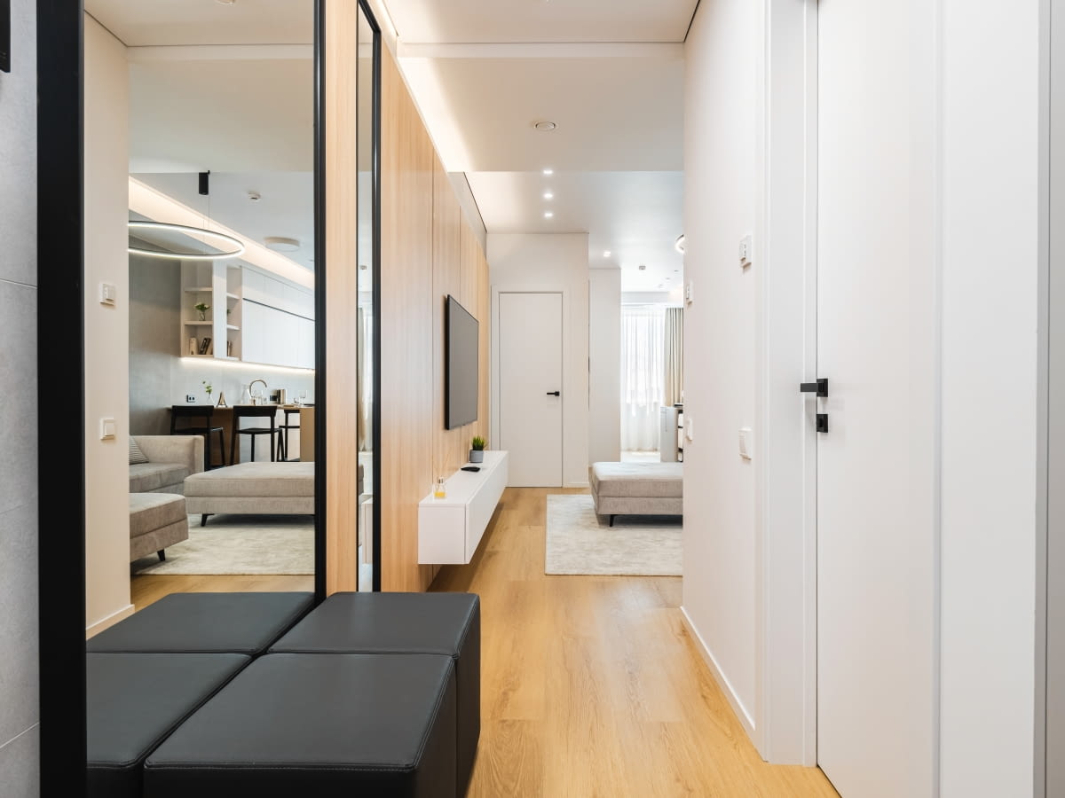 Jasne małe mieszkanie to efekt spójnej kolorystyki, ograniczenia barier dla światła, lekkich materiałów i przemyślanego oświetlenia, dzięki którym niewielka przestrzeń zyskuje lekkość i czytelność.
