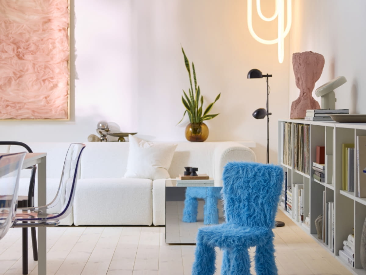 To podejście znajduje swoje odzwierciedlenie także w rozwiązaniach, które nadają znanym formom nowy wymiar. Futerkowy pokrowiec na krzesło MAMMUT zmienia jego oblicze, wprowadzając miękkość i wizualne ciepło, a przy tym jest zdejmowany i można go wyprać. Podobnie lekka i przenośna lampa w kształcie żyrafy, która dzięki miękkiemu światłu i wbudowanemu minutnikowi naturalnie wpisuje się w wieczorne rytuały.